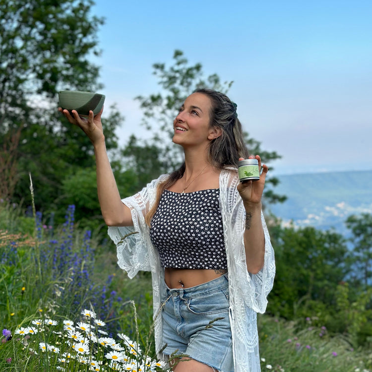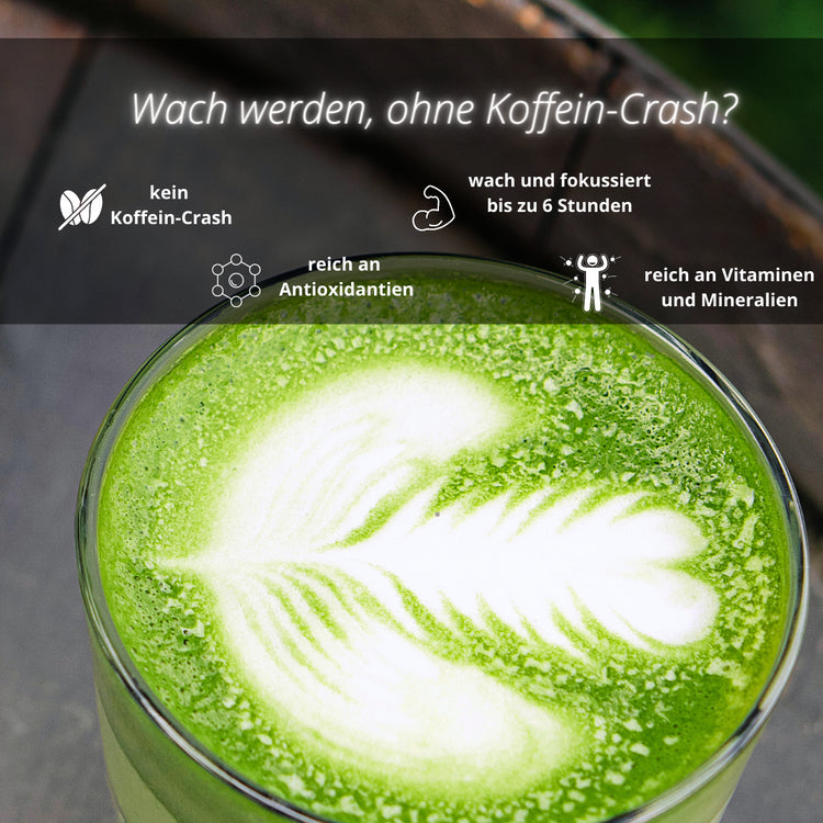 Matcha gilt als gesunde Alternative zu Kaffee: Er liefert langanhaltende Energie, fördert die Konzentration und sorgt für ein waches, fokussiertes Gefühl – bis zu 6 Stunden lang, ganz ohne Koffein-Crash.