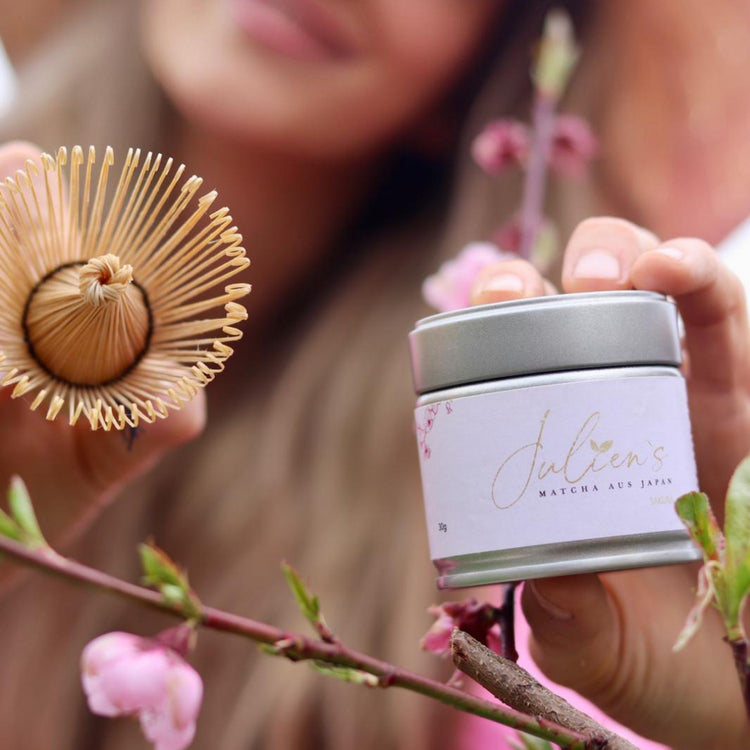 Aber das ist noch nicht alles! Gerade wenn du dich müde, schlapp und antriebslos fühlst, ist unser Sakura Matcha die perfekte Wahl, um deine Energie zu steigern und deine Stimmung zu heben.